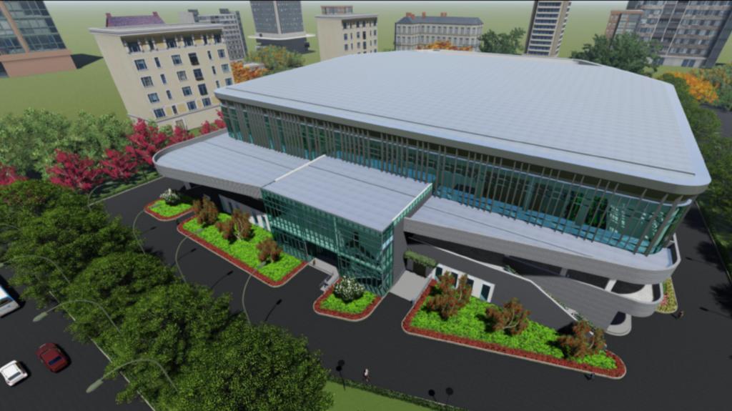 建筑结构类型:主体及看台采用钢筋混凝土框架形式,屋面采用网架结构体系;