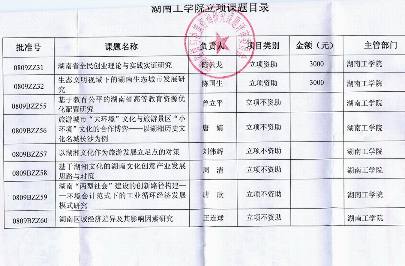 “湖南省情与决策咨询研究”2008-2009年度立项课题通知