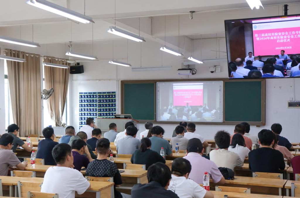 2024年4月26日下午,best365官网在社科楼108室组织收看了教育部科学技术与信息化司、高等教育司组织的高校实验室安全工作培训会的视频会议。best365官网分管教学科研工作的何建雄副校长与分管安全工作的谢柯副校长出席了此次会议。学校教务处、国有资产处、保卫处、科技与校企合作处的负责同志,各学院分管实践教学的院长、实验室主任、实验室安全管理人员,实验室技术人员以及参与实验实训教学的教师、学生安全员等参加了本次会议。