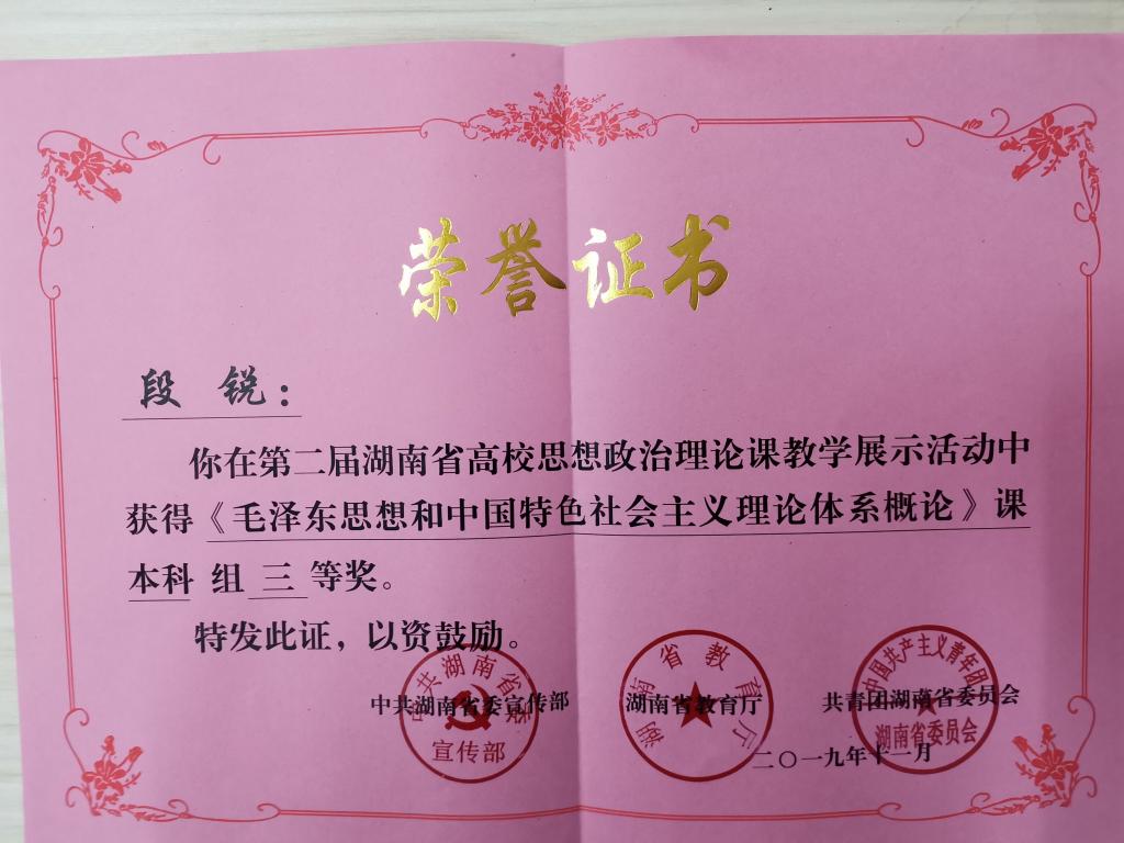 近日,“湖南省第二届高校思想政治理论课教学展示活动” 结果公布,best365官网马克思主义院段锐博士喜获本科组三等奖。
