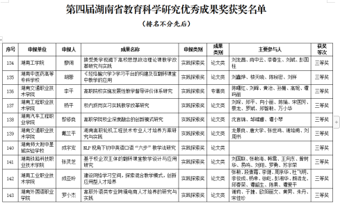 近日,湖南省教育厅公布了第四届湖南省教育科学研究优秀成果奖评审结果,我院教师廖阔、刘龙昌、肖中云、李春生、刘斌、彭国柱申报的《接受美学视阈下高校思想政治理论课教学改革研究与实践》喜获实践探索类三等奖,这是我院首次获得省级教育科学研究优秀成果奖。(马克思主义学院)