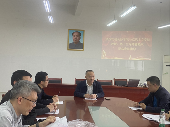 4月8日,全国高校思想政治理论课教师年度影响力提名人物、博士生导师、长沙学院蒋晓东教授应邀来马克思主义学院开展学术活动,活动由马克思主义学院院长张冬毛教授主持。学院全体思政课教师参加了活动。