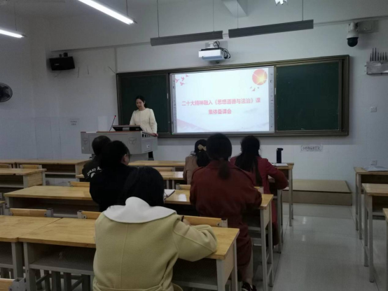 11月29日下午,思想道德与法治教研室在社科楼203召开了党的二十大精神“三进”工作集体备课会。会议由教研室负责人廖金芳主持,承担本学期《思想道德与法治》课教学的全体老师参加。