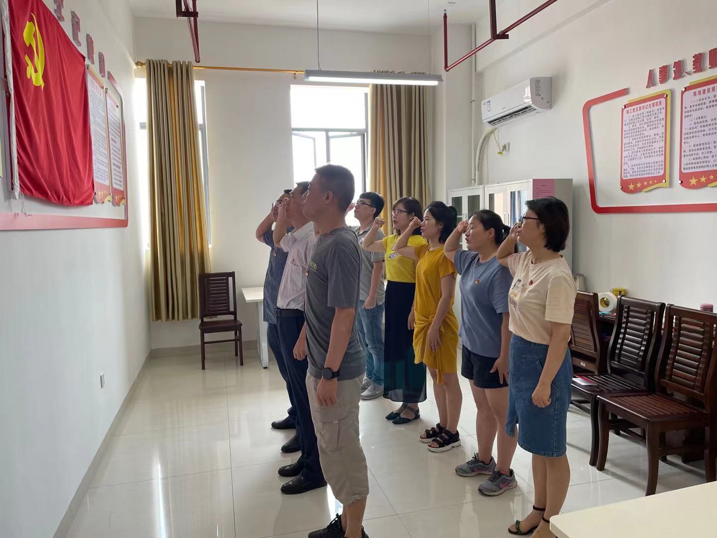2021年6月23日上午,人事处党支部在党员活动室开展了“党旗在基层一线高高飘扬”主题党日活动。