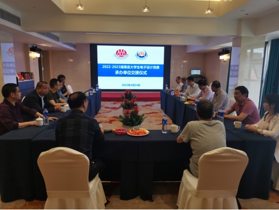 4月24日上午,2022-2023年大学生电子设计竞赛交接仪式暨竞赛组委会责任专家推荐会在长沙华文美森酒店7楼会议室召开,电气与信息工程学院院长李祖林、党委书记俞斌和副书记刘海波参加了会议。湖南省电子信息技术研究会理事长国防科技大学唐朝京教授、湖南省大学生电子设计竞赛责任专家组组长湖南大学黎福海教授、责任专家组成员吴新开和宋学瑞教授、湖南工程学院电气与信息工程学院院长万琴和书记黄望军等出席会议。受湖南省教育厅委托,会议由湖南省电子信息技术研究会理事长唐朝京教授主持。