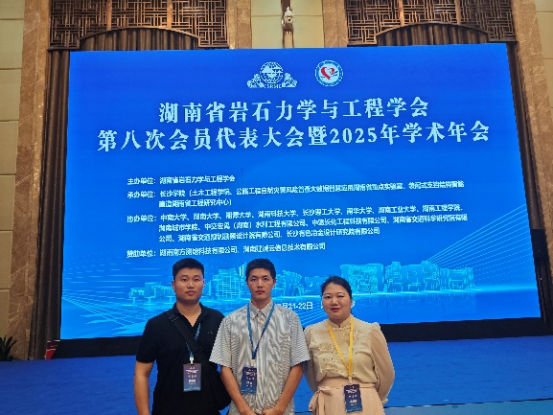 2025年6月22日,best365唯一官方网站土木与建筑工程学院教师沈晴晴、刘强、颜宏毅应邀参加《湖南省岩石力学与工程学会第八次会员代表大会暨2025年学术年会》。本次大会以“数智岩土工程与防灾减灾”为主题,旨在促进湖南省岩石力学与工程领域的学术交流,展示最新研究成果,探讨学科前沿动态,并推动岩石力学与工程计算、大数据技术、人工智能等新兴领域的交叉融合,助力湖南省岩石力学与工程领域的学科发展。