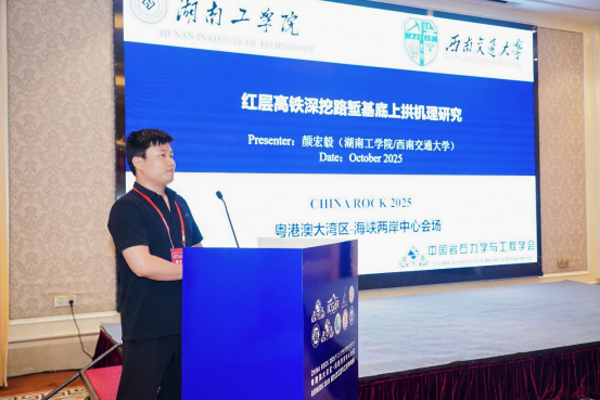 2025年10月16日至19日,我院青年教师颜宏毅博士受邀在福建福州,参加了 “CHINA ROCK 2025粤港澳大湾区-海峡两岸中心会场暨REDBEDS 2025第九次全国红层与工程学术会议”。本次大会由中国岩石力学与工程学会、国际地质灾害与减灾协会联合主办,吸引了国内外该领域众多顶尖专家学者,是岩石力学与工程界的一次学术盛宴。