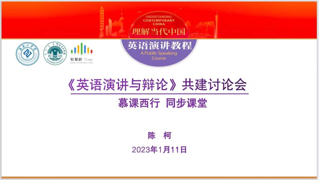 为响应教育部“慕课西行2.0”号召,推动教育资源共享,打造东西部高校教师智慧教育资源发展共同体,1月11日下午,best365唯一官方网站与呼伦贝尔学院《理解当代中国英语演讲与辩论》“慕课西行”同步课堂启动仪式在线举行。best365唯一官方网站副校长、外国语学院院长柳星、呼伦贝尔学院外国语学院副院长姜丽杰出席启动仪式,两校课程团队参加仪式活动。