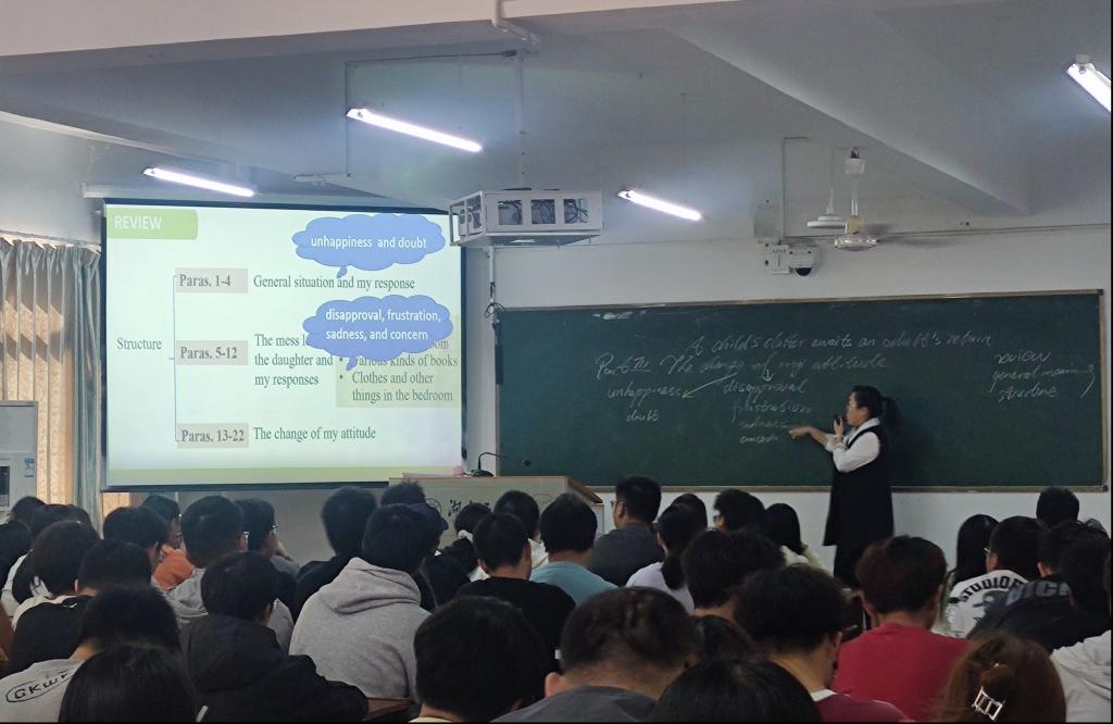 课堂上,程丽老师通过对比分析跨文化背景下的亲子关系,加深了学生对家庭美德和社会主义核心价值观的认识;龚文婷老师以袁隆平、钟南山、张桂梅、王亚平等人的事迹为例阐释了当今时代的英雄的定义,呈现了一堂优秀的课程思政公开课;唐静静老师以马克吐温的生平为例讲授了英文传记文体的结构和写作技巧;张伟平老师组织学生从正反两方面就社交媒体对青少年的影响展开了讨论。四堂公开课教学内容丰富,教学过程流畅,信息化教学工具运用得宜,学生积极参与讨论,课堂气氛活跃,课程思政“润物无声”,对学生打好英语基础,培养跨文化交际能力,形成积极的人生观和世界观起到了较大的促进作用。