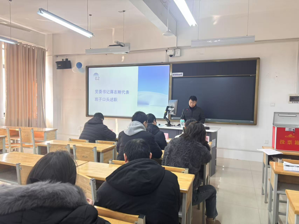党委书记蒋志刚代表学院领导班子进行了口头述职。他全面总结了2024年学院在党的建设、教学科研、学生管理等方面所取得的成绩与存在的不足。他强调2025年,学院要在党建引领、学科专业优化调整、师资队伍建设等三个方面下功夫,推动各项事业快速高质量发展。