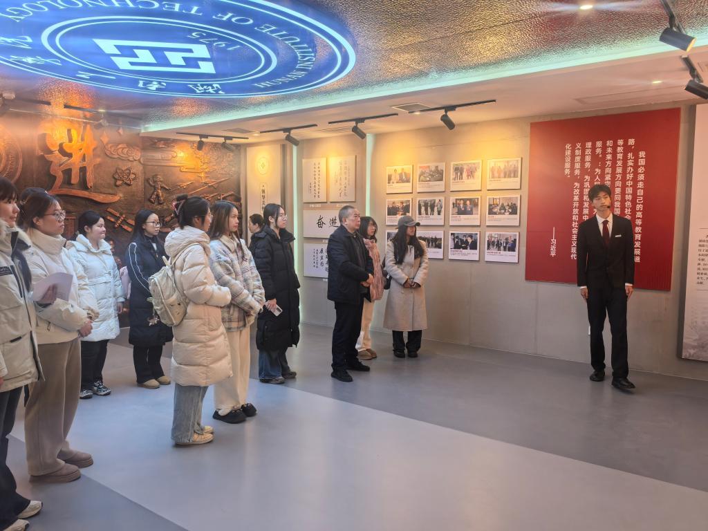 校史馆内,泛黄的史料、珍贵的实物、生动的影像,系统串联起学校自1975年建校以来扎根湖湘、深耕教育的发展脉络。大家循着讲解思路,重点探寻学校“由党创办、与国同行”的红色办学底色,深切感受一代代湖工人坚守教育报国初心、践行立德树人使命的实干精神,在回望校史中感悟初心使命,在缅怀伟人中淬炼党性修养。
