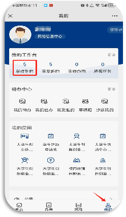 在服务大厅页面“我的”栏目中选择【我收到的】。