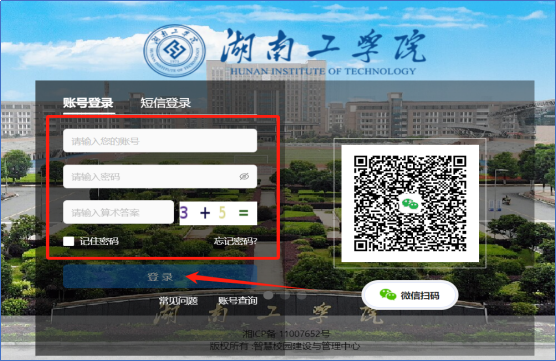 在出现的登录页面中输入账号、密码以及验证码【账号为:学号;验证码为:请输入验证图片中数字的计算结果,例如下图则输入:8】,输入完后点击“登录”。