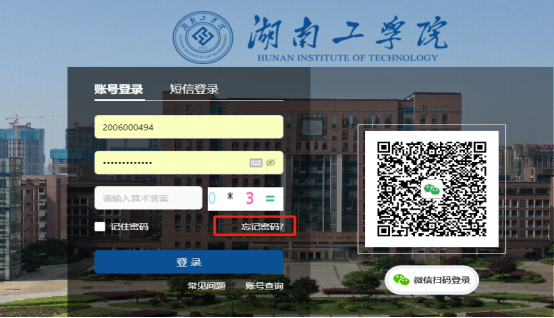 (一)在统一身份认证登录页面点击忘记密码,如下图所示。