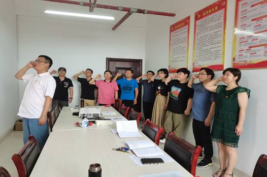 会后,全体党员面向鲜红的党旗,举起右拳,在刘伟辉的带领下重温了入党誓词。