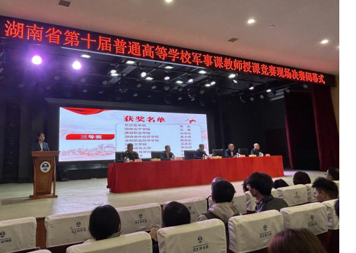 湖南省普通高等学校军事教师授课竞赛由湖南省教育厅主办,每两年一次,每所本科院校推荐2名教师、高职专科学校推荐1名教师参赛。评审组严格按照教学内容、教学方法和总体评价等6个方面综合评定选手成绩。