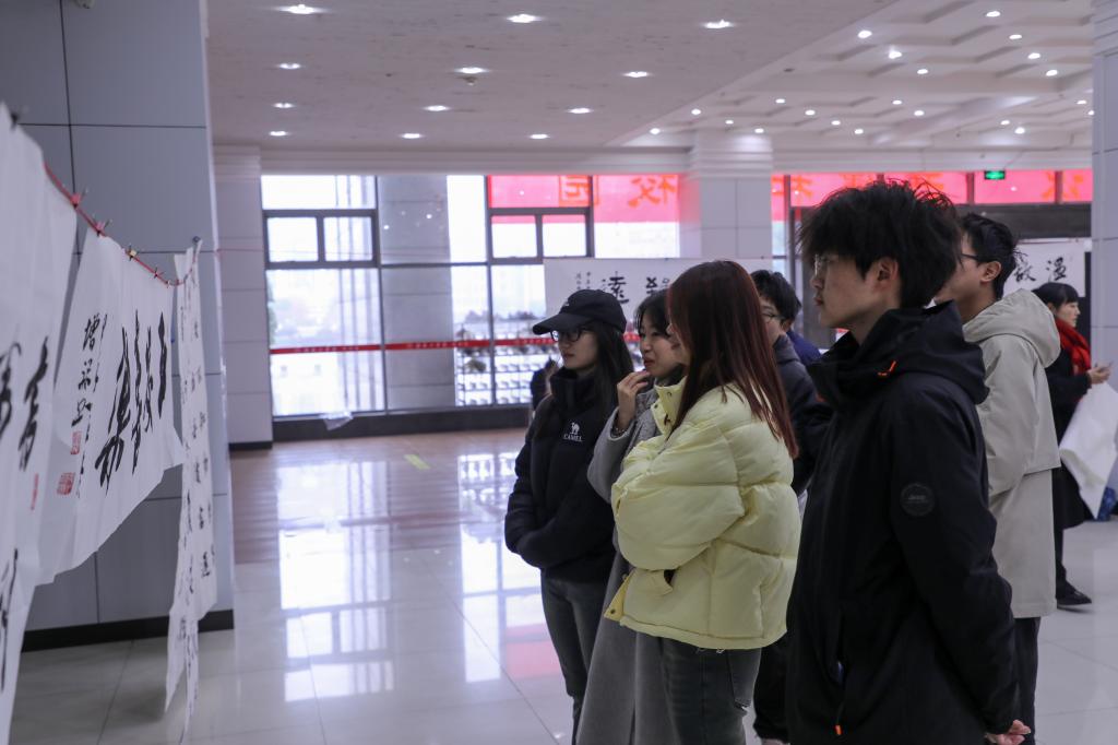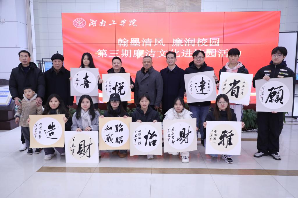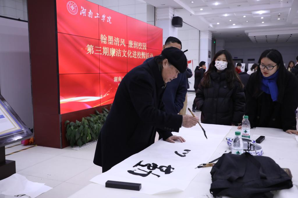 活动中,由雁城书画院院长王益军带队,舒迪柔、毛增禄、罗红卫、易正华等衡阳书法名家与现场的师生们一起创作书法作品,交流创作技艺和心得,现场气氛热烈。字里行间尽显廉洁文化的精神,给师生们留下了深刻的印象。活动在图书馆一楼大厅设置“廉洁长廊”,开展雁城书画院及best365官网书法协会师生书法作品展,通过生动的笔触展现了廉洁的内涵与意义,吸引了众多师生驻足观看。