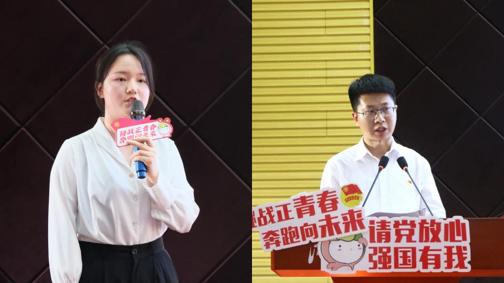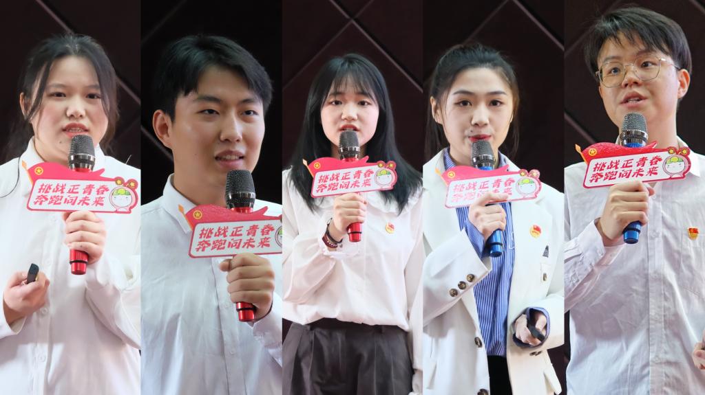 “挑战杯”不只是比赛,项目带来的成长,只有亲身经历才知道。参赛学生代表沈赞同学以“致敬每天两点一线的生活”“跌宕起伏的校赛路演”“竞赛的自我革命与创新”三个片段,分享了参赛的心路历程和成长收获。情到深处,她发出“挑战杯”让“我的大学真的算是无悔”的呼喊,让全社会看到大学生为解决国家科技难题而拼搏、开拓、奋进的热血与激情,让时代见证青年科技创新带来的进步与飞跃。将牢记习近平总书记的谆谆教诲,在未来继续踔厉奋发,勇毅前行,争取跑出属于湖工青年的最好成绩!