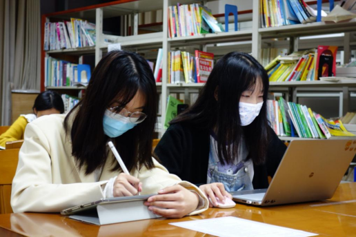 陈雅婷(左一)、曾源在图书馆学习