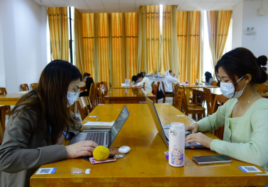 徐星帆(左一)、彭雨菡在学校图书馆学习