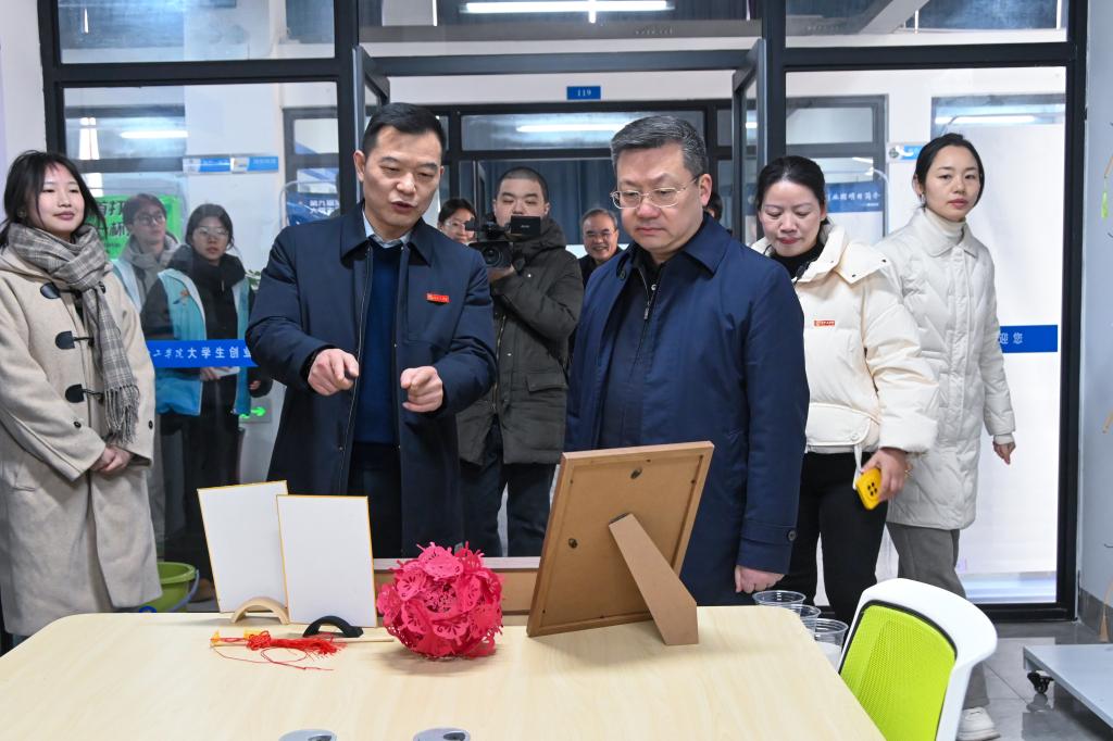在大学生创业园,陈澎察看了“震守建筑”“醋类拔萃”“智芯新材”等多个创业项目。他与创业团队成员亲切交流,对大学生们的创新精神和实践能力表示赞赏,并鼓励他们不断提升创新能力,努力将科研成果转化为现实生产力。