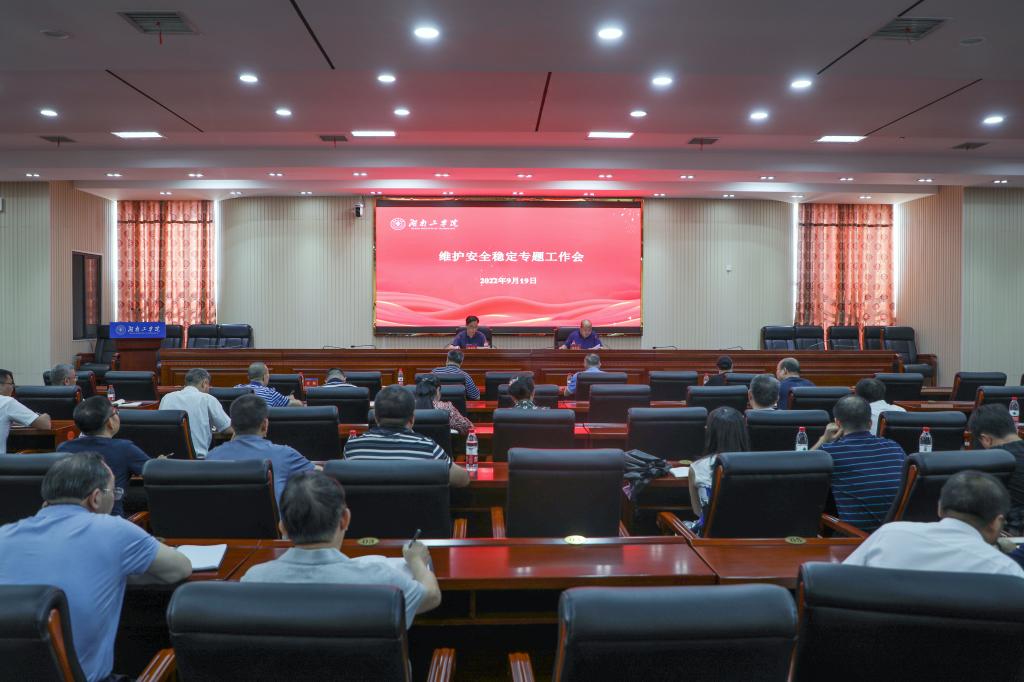 9月19日下午,学校在船山报告厅召开维护安全稳定专题工作会议。校党委书记宋克慧出席会议并讲话,党委委员、副校长刘升学主持会议。