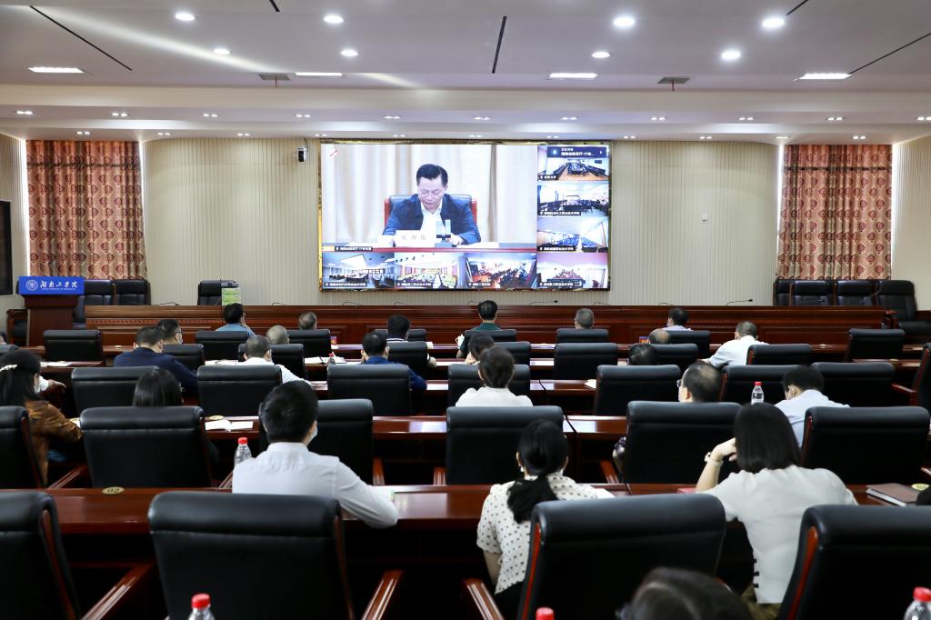 11月11日上午,湖南省教育厅召开全省教育系统疫情防控工作视频会议,best365官网在教学楼船山报告厅组织分会场集中收看。校党委书记宋克慧、校长曹执令和副校长刘龙昌、黄红卫,纪委书记张治春、党委委员袁勤出席分会场会议,二级学院党委书记、院长和各职能部门负责人、全体辅导员、组织员,疫情防控办公室全体成员参加会议。