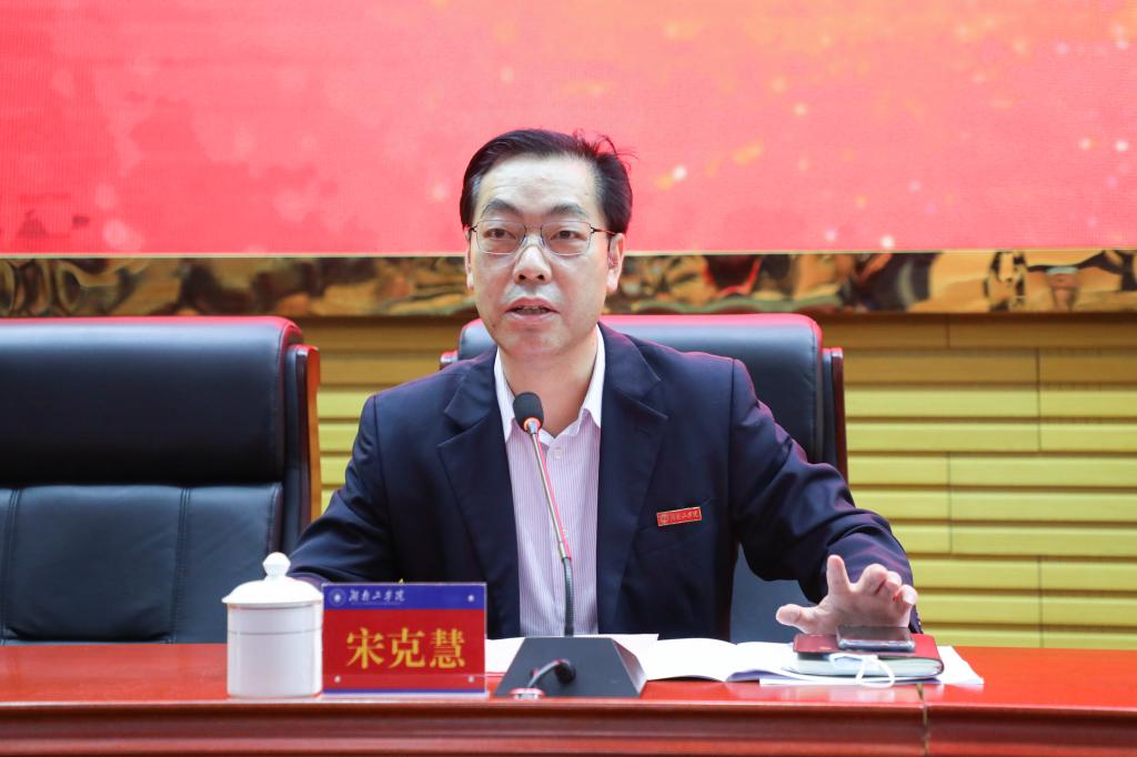 宋克慧在总结讲话时指出,学校发展已经到了爬坡过坎的重要关头,提升质量、强化内涵、凝练特色成为学校在日益激烈竞争中图生存、谋发展的关键所在。就如何推动学校实现更高质量发展他提出了三点要求:一是增强历史主动,心怀“国之大者”“省之大局”“市之大计”,书写湖工人才培养的实践答卷;二是坚定历史自信、保持战略定力,克服困难,筑牢人才培养质量意识,强化内涵建设;三是抓好工作落实,助推学校高质量快速发展,确保全面完成“十四五”规划各项工作目标。