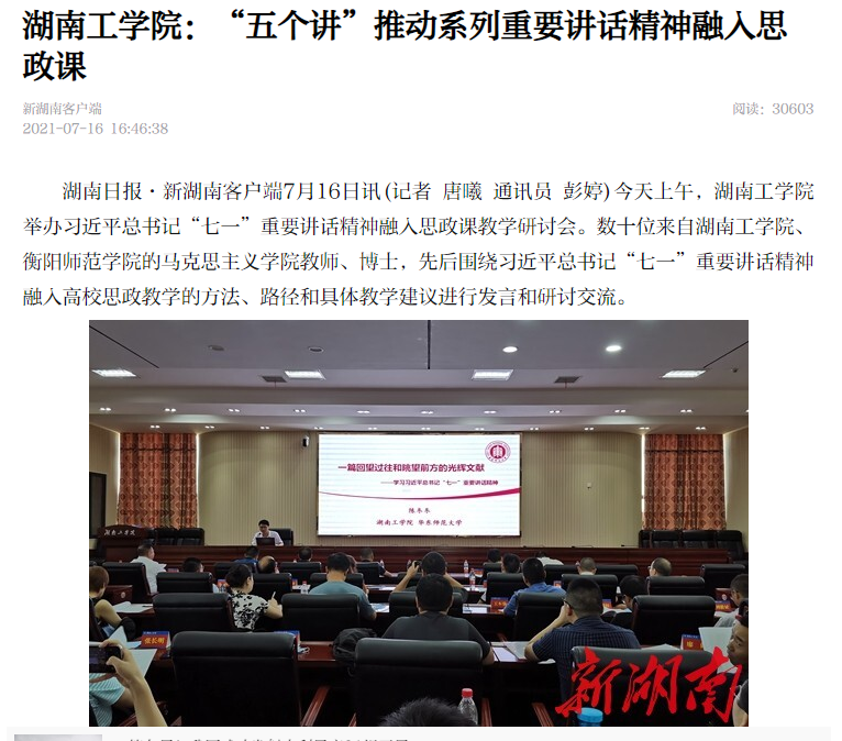 张冬毛:学院认真贯彻落实上级关于加强思政课建设的要求,始终坚持立德树人根本任务,坚守思政课堂教学主阵地,以提升人才培养质量为核心,以课程育人与实践育人为突破口,深入推进思政课教育教学改革,优化教学手段,改革教学方法,鼓励、引导学生自主学习,培养学生对思想政治理论的认知及团队合作精神,为学生成长成才奠定科学的思想基础。学院目前拥有2个省级教学团队平台,1门省级思政“金课”,4门校级思政“金课”。近三年获得湖南省思政课教师教学展示竞赛二等奖1项,校级一等奖4名;多名教师在湖南省高校微课大赛、微党课大赛获奖。指导学生获得湖南省高校“新思想进校园”学生微宣讲冠军,湖南省普通高校大学生思想政治理论课研究性学习展示竞赛一、二等奖各2项。