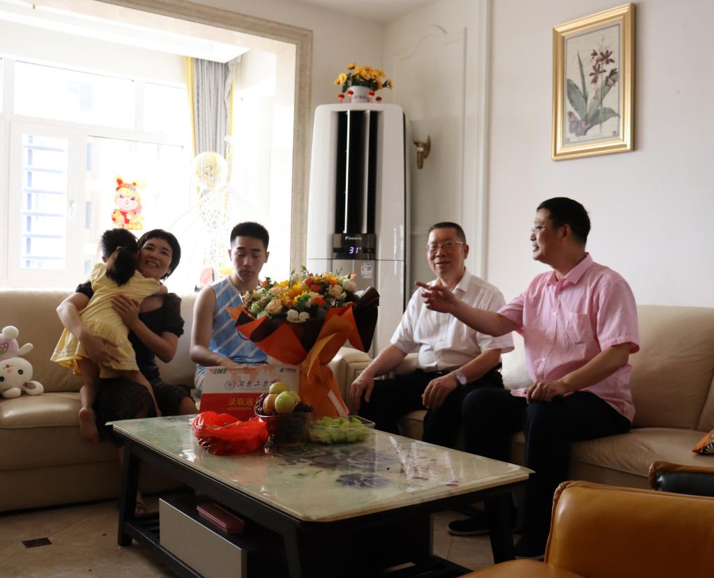 “祝贺你,湖工欢迎你!”7月25日,党委委员、副校长,宣传、统战部部长刘龙昌携招生就业处处长刘伟辉一行带着红彤彤的录取通知书,专程赶到祁阳市萧雨浩同学家,将录取通知书亲自送到了学子手中,拉开了best365官网2023级本科新生录取通知书送递活动的序幕。