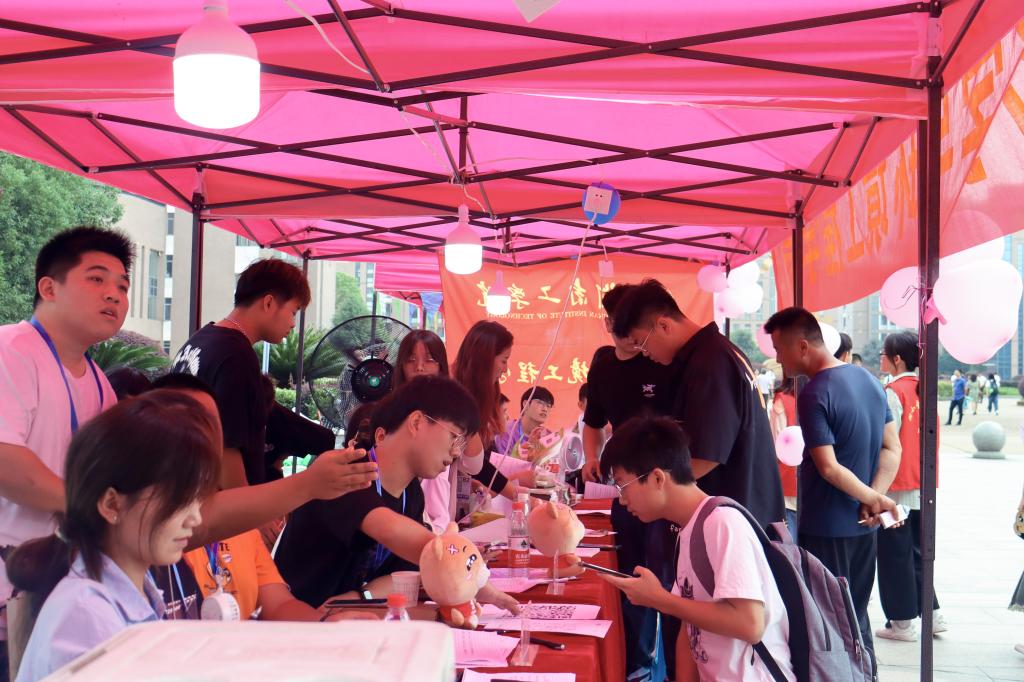材料科学与工程学院及安全与管理工程学院设置了充满仪式感的欢迎2023级新生“签名墙”,化学与环境工程学院为前来报道的新生和家长提供免费的凉茶和冰棍,成为校园内一道亮丽的风景线。其他各二级学院的迎新点也井然有序地展开,各式横幅、独具特色的互动展板以及镌刻姓名的留言墙,共同为校园增添了喜庆的迎新氛围。