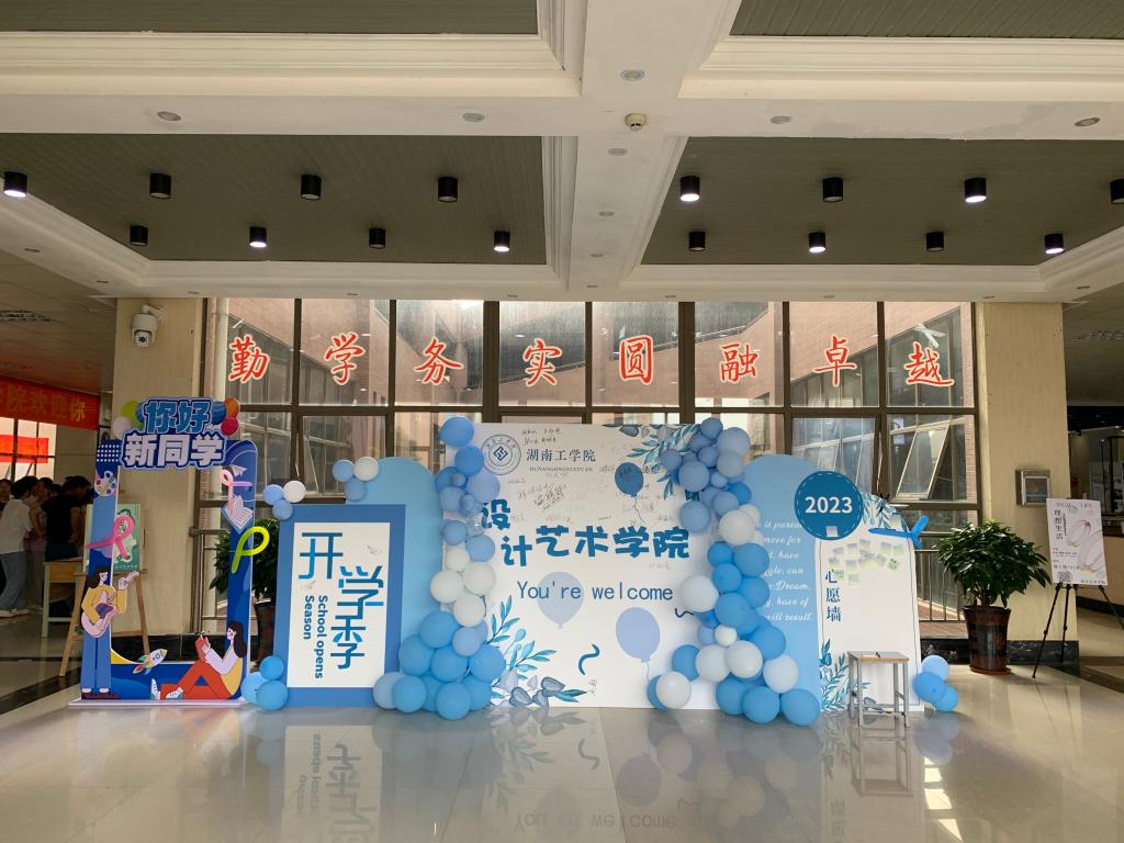 在这个特殊时刻,计算机科学与工程学院为新生定制了专属信封,并结合AI绘图技术制作了新生卡套,不仅具有高科技感,还兼具艺术氛围,成为迎新工作的一大亮点。而设计艺术学院则以浪漫的蓝色元素装点了“开学季心愿墙”和“你好,新同学”拍照打卡点,邀请新同学和家长们合影留念,为他们留下与湖工的独特回忆。