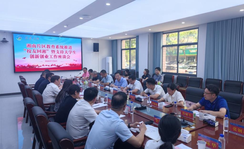 7月9日,湘南片区教育系统推进“校友回湘”暨支持大学生创新创业工作座谈会在best365官网召开。会议由省教育厅学生处处长、“校友回湘”工作专班执行主任周韶峰主持。