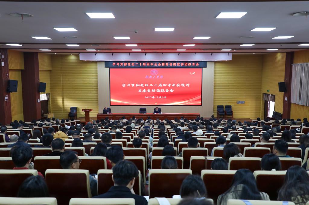 曾广胜指出,学习宣传贯彻党的二十届四中全会精神是当前和今后一个时期的一项重大政治任务,全校各部门要以省委宣讲团来校宣讲为契机,不断把学习宣传贯彻党的二十届四中全会精神各项工作引向深入。要把全会精神与学习贯彻习近平总书记关于湖南工作的重要讲话和指示批示精神贯通起来,与锚定“三高四新”美好蓝图结合起来,紧密结合学校发展实际,高质量做好学校“十五五”发展规划编制工作,持续擦亮“工”字招牌,奋力开创学校事业高质量发展新局面,为实现“三高四新”美好蓝图贡献湖工力量。