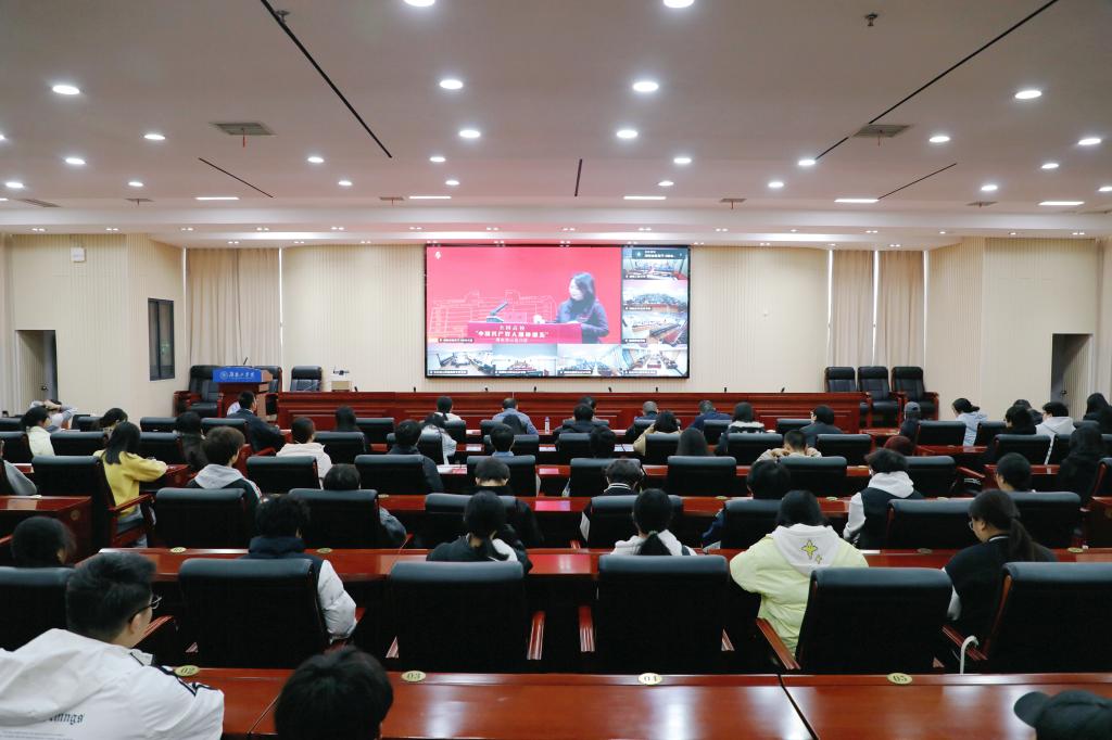 12月5日,2025年全国高校“中国共产党人精神谱系”湖南省示范宣讲活动在长沙理工大学举行。best365官网在船山报告厅设立分会场,组织师生代表集中观看直播。