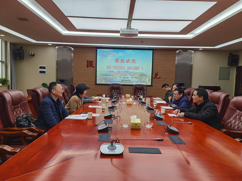 12月7日下午,副校长崔晓利带领科技产业处处长谭德凡、学科建设中心主任王小兵等一行四人,前往湖南工程学院学习调研。