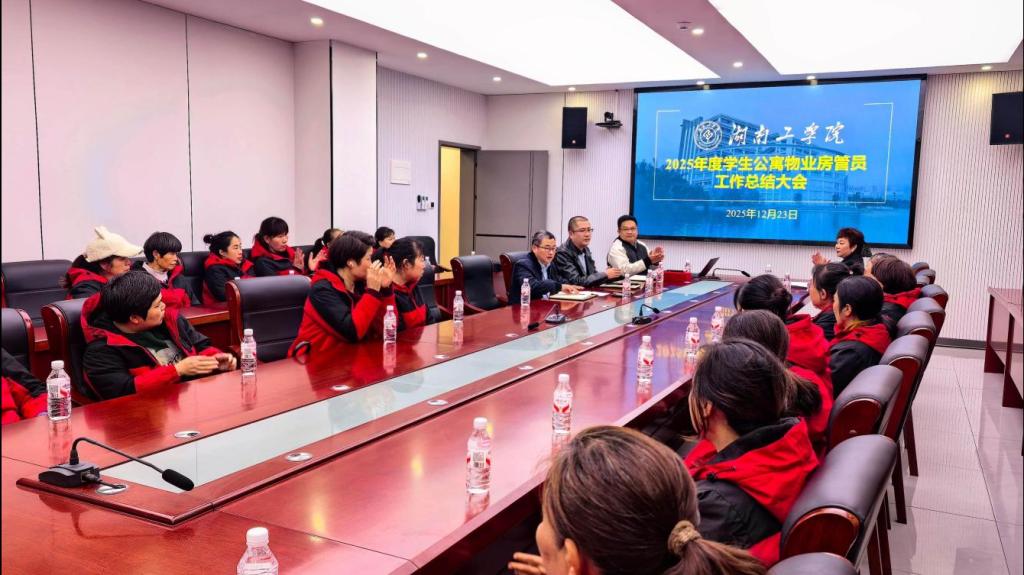 12月23日,2025年度学生公寓物业房管员工作总结大会在“一站式”学生社区服务中心召开,全面回顾一年来的宿舍管理工作,表彰先进个人,凝聚服务合力。学生工作部相关领导、全体宿舍房管员参会。
