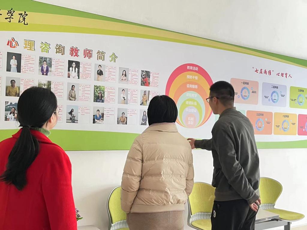 随后,双方围绕心理健康工作机制建立、心理健康课程设置、危机学生筛查与干预、心理辅导方式、教育宣传活动等内容进行了交流。在心理健康教育课程设置上,两所学校就自身学生特点进行了分析和讨论,结合不同年龄阶段学生的身心发展特点交流课程的设置经验。