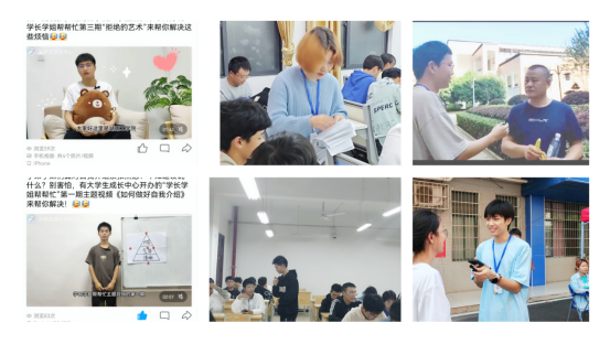 线上线下联动营造科普氛围。学生团队自导自演拍摄“学长学姐帮帮忙”科普视频。主题包括“如何在大学省钱”、“拒绝的艺术”等,主题贴近学生生活、学习各个方面,深受学生欢迎,获得大量点赞、转发。线下则带着小礼物和游戏走进教室,与同学们近距离接触,将心理知识切实传播到学生身边,以自己的经历示范如何运用心理学知识解析身边人、身边事,帮助新生做好身份角色转换。