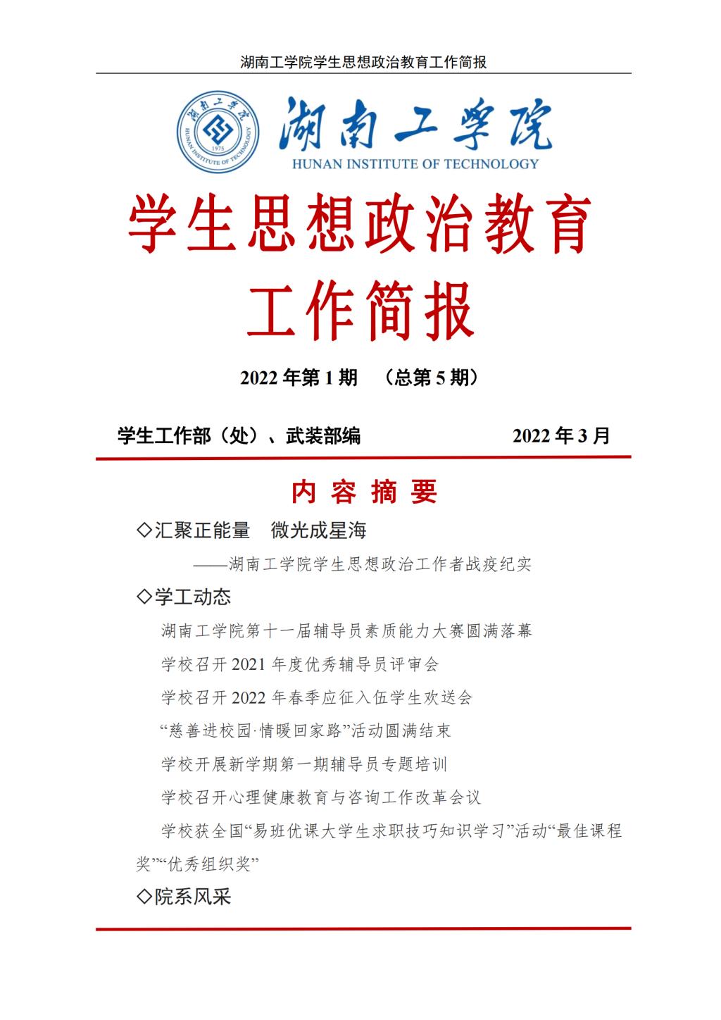 best365唯一官方网站2022年学生思想政治教育工作简报(2022年第1期(总第5期))