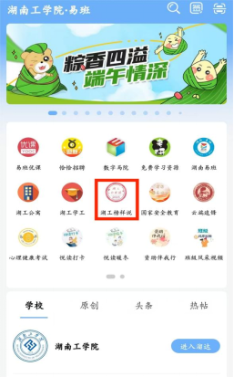3、通过进入易班APP首页找到“湖工榜样说”课群图标直接点击进入。