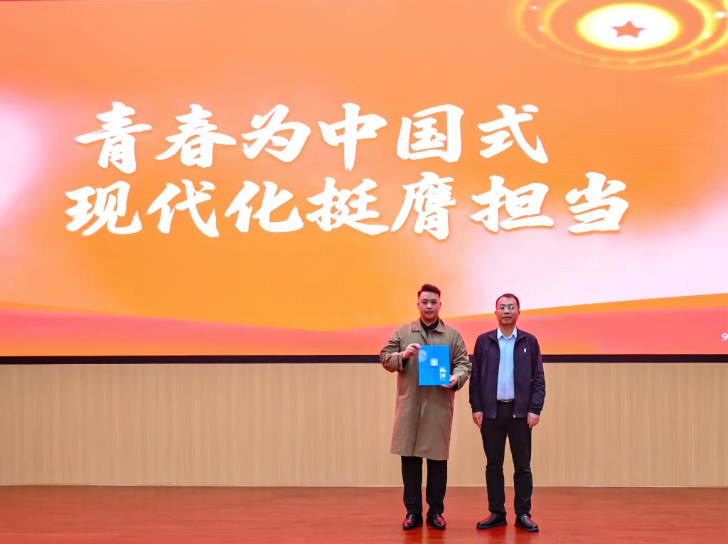 宣讲尾声,罗建新为江杨子颁发青年导师聘书。