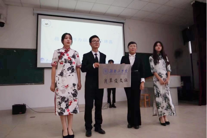 最后由何璐老师为社团授予了牌匾,并由前任社长戴可心与谭康平两人进行了会章会旗的交接仪式。参会人员和何璐老师进行了合影留念。