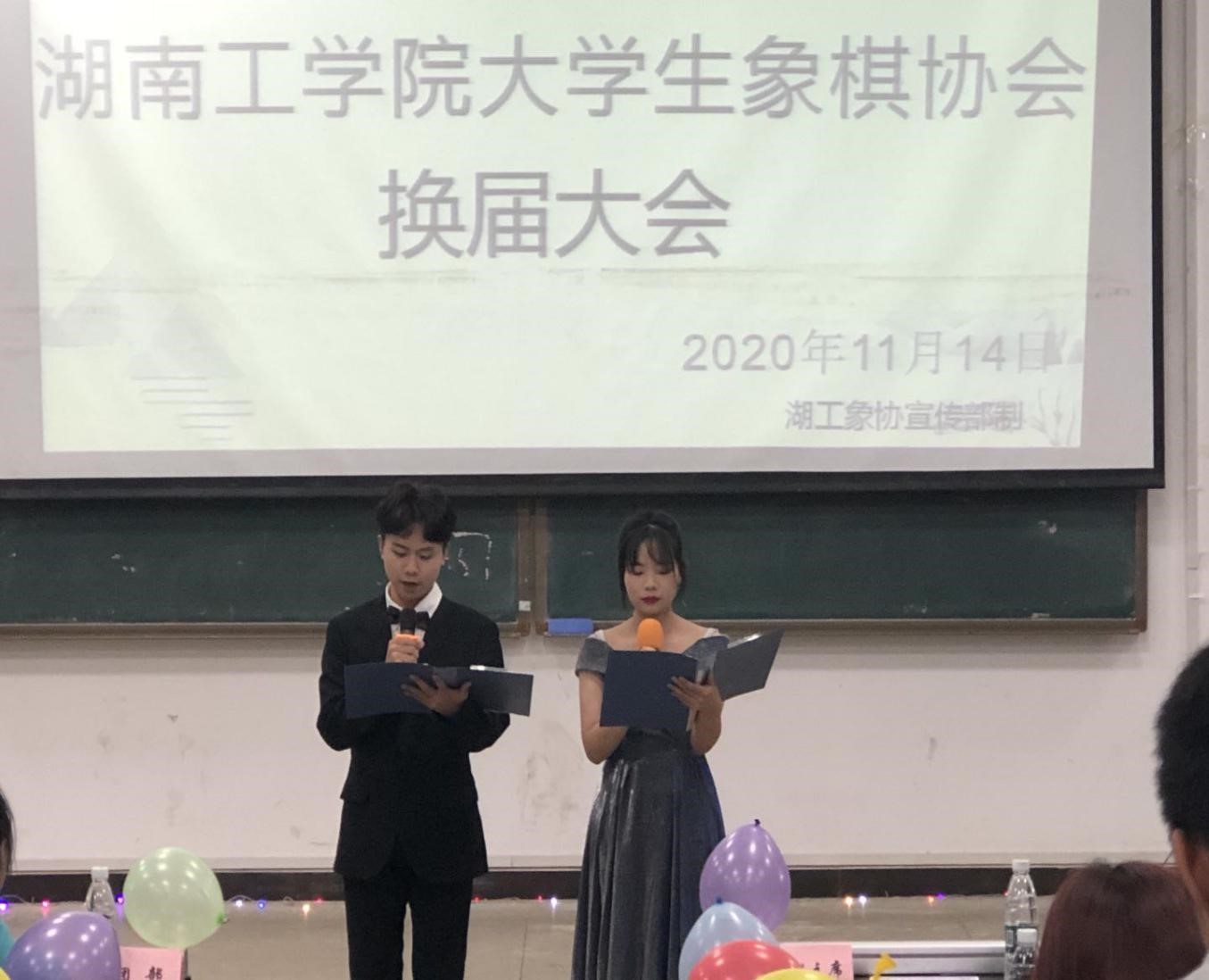 11月14日下午4点30分,best365唯一官方网站大学生象棋协会换届大会在建工楼6215教室拉开了帷幕。本次大会由象棋协会的副会长江先龙和干事蒋佳佳主持,前任会长贺文娟、新任会长谭溢,副会长江先龙、罗方博参加会议。此次大会邀请了学校领导、老师、学校其他协会,以及象棋协会的会员们。