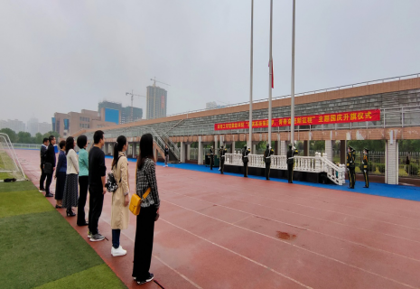 7时30分,升旗仪式正式开始,全体师生衣容严整、队列整齐。校国旗护卫队队员踏着坚定有力的步伐,护送国旗入场。伴随着雄壮的《义勇军进行曲》,全体师生肃立,行注目礼,鲜艳的五星红旗冉冉升至旗杆顶端,迎风飘扬。