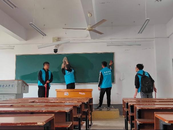 志愿者们身穿红马甲,手拿扫把和抹布,早早在机械楼大厅集合。活动中,大家有序分工、团结协作,认真清扫教室、走廊垃圾,整理讲台,给广大师生带来了干净舒适的学习工作环境。