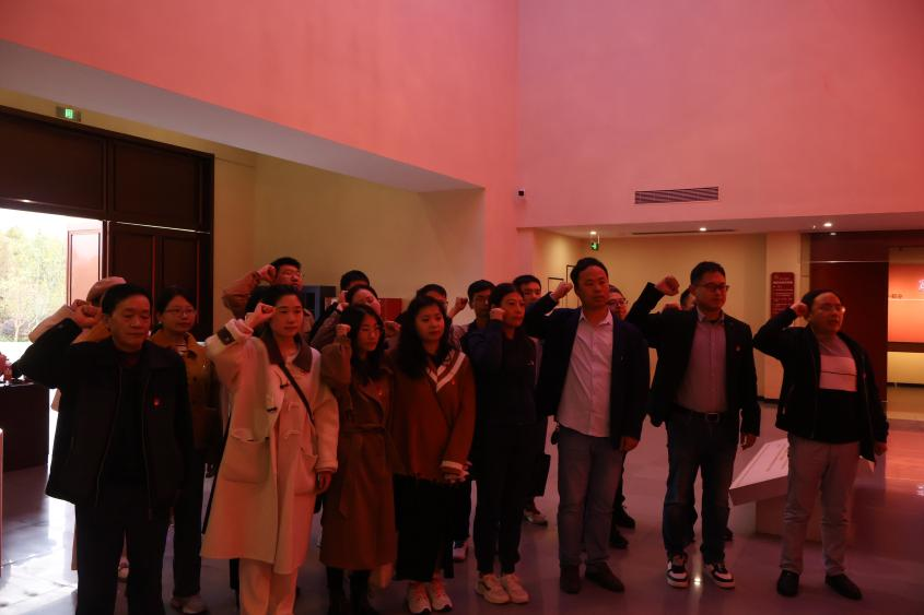 全体党员整齐列队,高举右手,紧握拳头,面对鲜红的党旗,重温入党誓词。誓言铿锵有力,回响在展厅的每个角落。