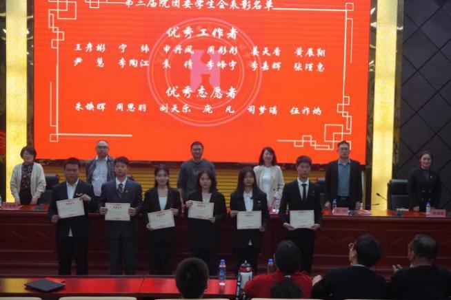 在一同观看化环学院省级“三下乡”示范团队best365唯一官方网站“共护诗画万丈田,同筑百年乡村梦”赴湖南省永州市江永县暑期社会实践团的宣传视频后,台上领导老师为受表彰的团体及个人颁发了荣誉证书。