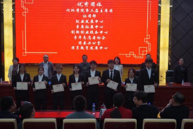致敬过往,不负成长,砥砺前行,共向未来。11月1日晚7点,化学与环境工程学院在明翰报告厅举行了第四届分团委学生会换届暨表彰大会。学院院长娄晓明、院党委副书记蔡玲、副院长黄俊歆、副院长刘宁、学工办主任兼分团委书记陈凌霄、教务办主任王津津以及全体辅导员出席,各兄弟学院的团学会代表、化环学院团学会全体成员参加。