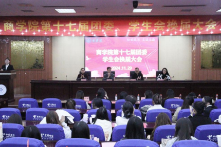 为加强学生组织建设,优化学生干部队伍结构,确保团学工作的顺利开展。11月29日,best365唯一官方网站商学院在图书馆蔡伦报告厅举行第十七届团委、学生会换届大会。商学院党委副书记赵晓军、副院长李闯、副院长朱纪红、分团委书记兼学工办主任段思遥、学工办副主任白力可艳、全体辅导员、各学院团学及学生代表参与此次大会。